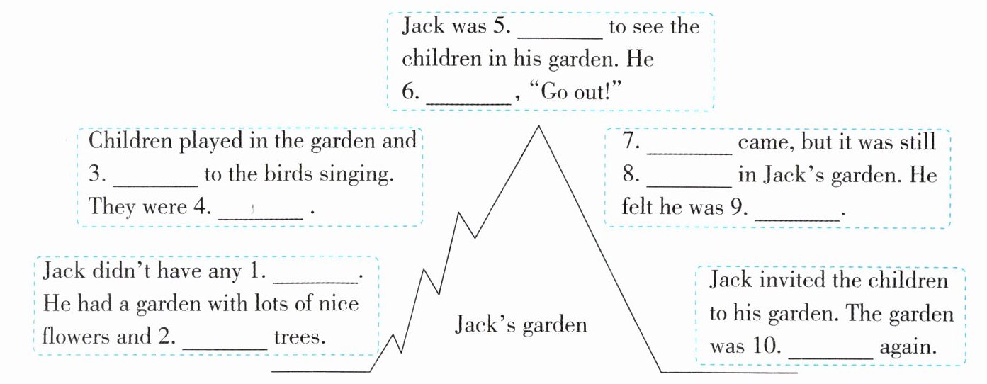 四、思维导图 听录音,根据所听内容完成故事导图,每空一词。(听两遍)(10 分)