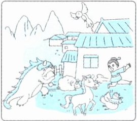 )2. At the beginning of spring, Nian came out and looked for people to eat.(