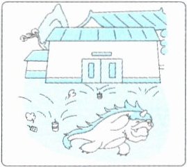 The night before the next Chinese New Year, the monster came again. Suddenly the monster heard a big BANG! BANG! BANG! BANG! The monster was afraid of the noise. It stopped. It saw fire. Then it saw people wearing red clothes. The monster didn't like noise, and it didn't like fire. So it ran away.