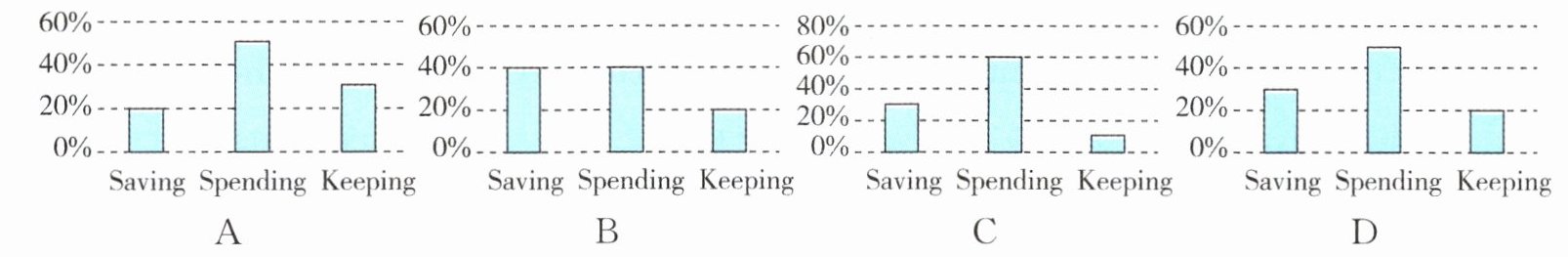 )3. 统计图表 Which of the following might be AI's advice on managing a budget?(