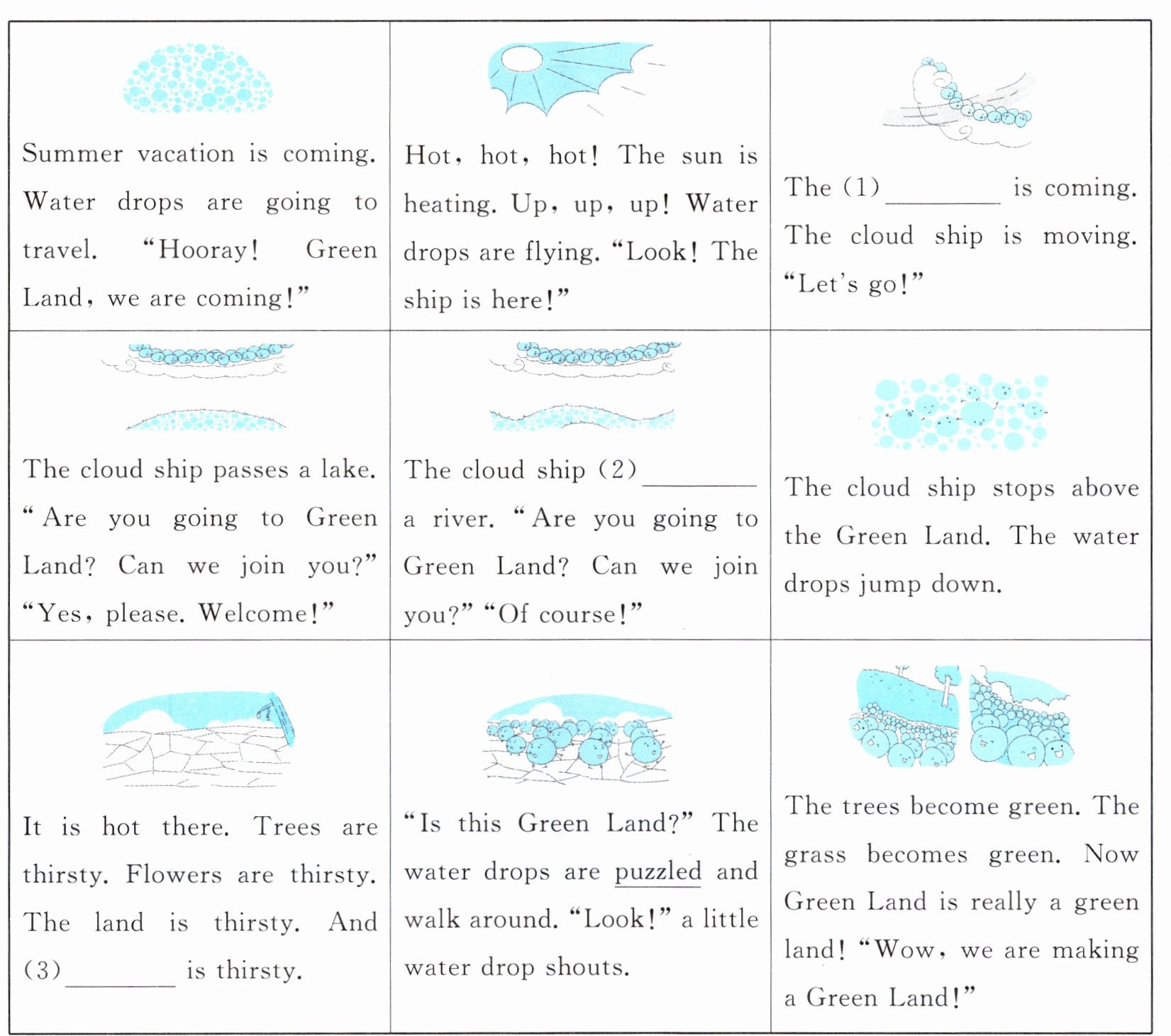1.根据故事,选择恰当的单词,将标号写在横线上,其中有一个多余选项。