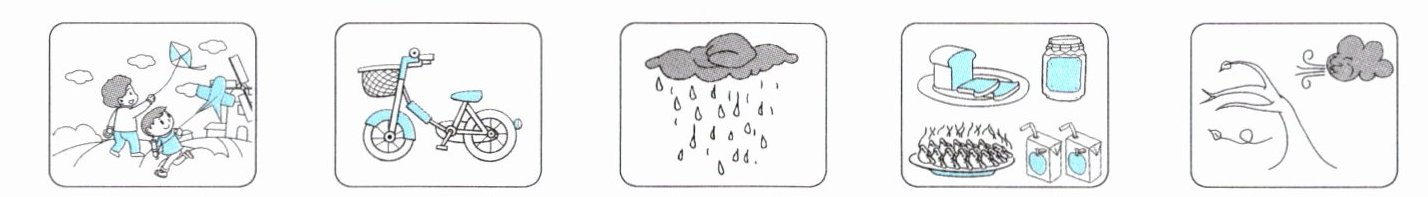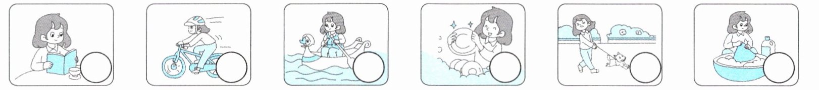 (一)在读书、划船、遛狗和洗衣服四幅图的圆圈中画“√”。