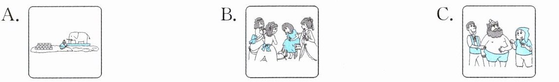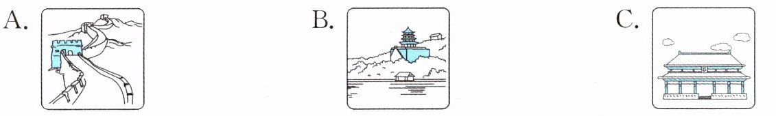 二、听录音,根据听到的对话及问题,选择正确的图片。(听两遍)(5分)