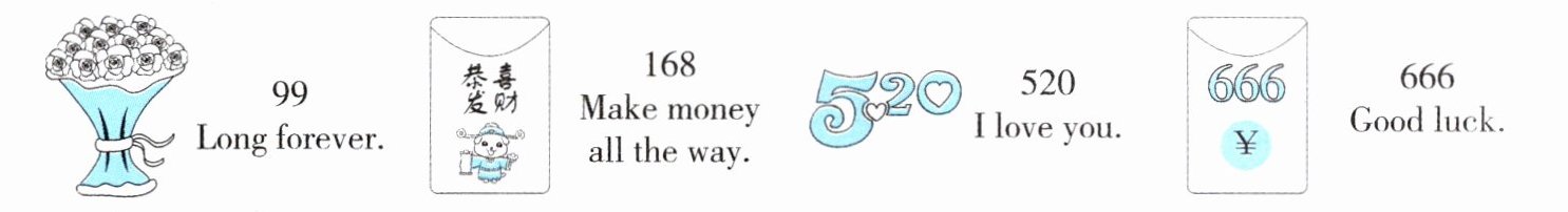 Nowadays, Chinese people love to use some lucky numbers to show their wishes.
