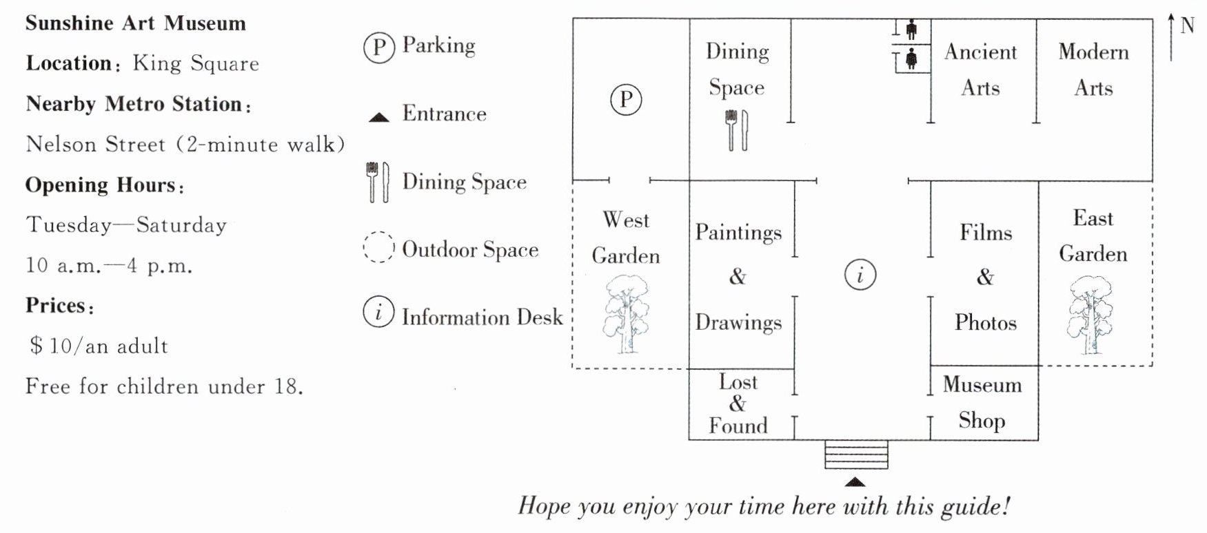 )1. You can visit the Sunshine Art Museum at ____.A. 10:00 a.m. Sunday