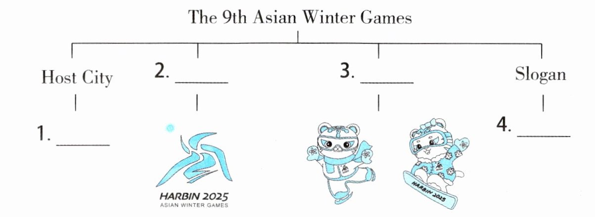 )4. Which isn’t shown on the emblem of the 9th Asian Winter Games?A. The lilac flower of Harbin City. B. The speed skater’s image.