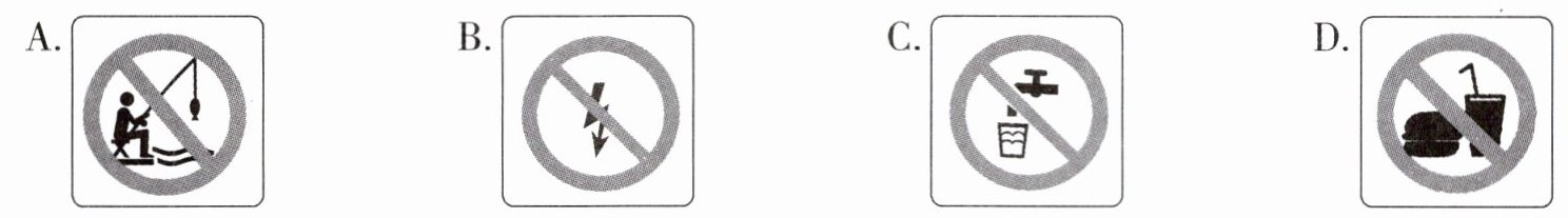 解析:原文“Pieces of food and a little water in the keyboard are also bad for a computer.”(键盘里的食物残渣和少量水对电脑也有害。) 标识D是“禁止饮食”的图标,因此填写标识D,并补充句子“Don't eat or drink near the computer”(不要在电脑附近饮食),表达禁止在电脑旁饮食的意思即可。