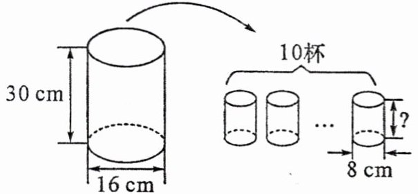 10. (2024·太原五中月考改编)好朋友给小亮过生日,如图,现有底面直径为16cm,高为30cm的圆柱形容器,里面装满了果汁,小亮要把果汁分装到底面直径为8cm的10个小圆柱形杯子里(每个杯子刚好装满),与好友分享,则杯子的高度为