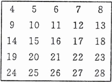 (1)横行上相邻两数之差(大数减去小数)为1,竖列上相邻两数之差(大数减去小数)为5.