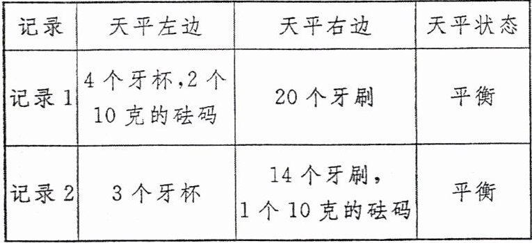 个牙刷和 5 个 10 克的砝码可使天平平衡.