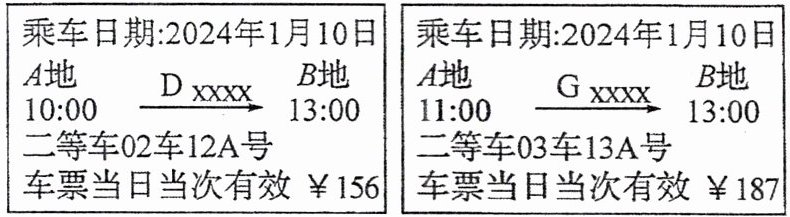 13. (2025·山西大学附中开学考)以下是两张不同类型火车的车票$(“D_{xxxx}”$表示动车,$“G_{xxxx}”$表示高铁):