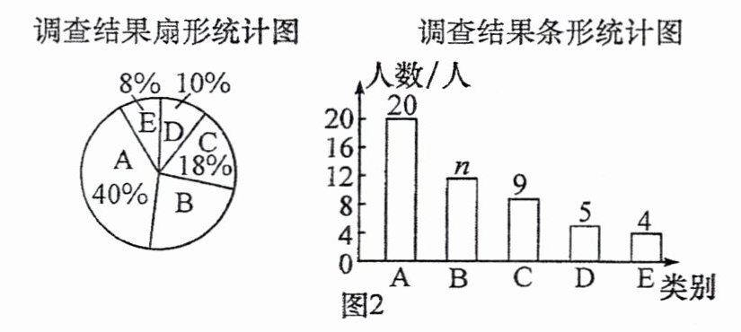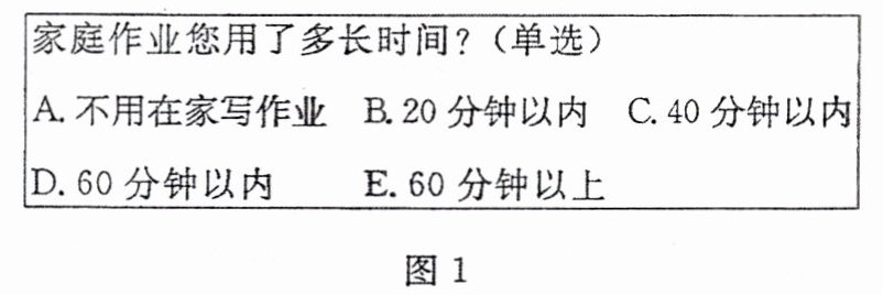 10. 为了解同学们完成家庭作业需要的时间,某校数学兴趣小组随机调查了部分学生(问卷调查的内容如图1所示),并根据调查结果绘制了如图2所示的两幅统计图.