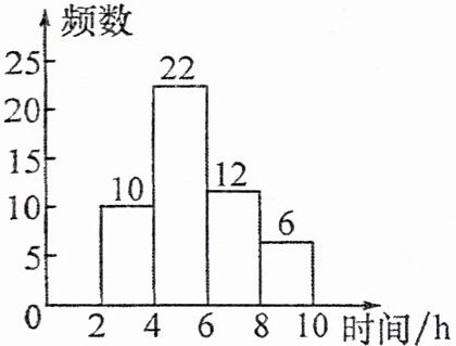 5. 某班学生每周参加体育锻炼时间的频数直方图(每组含前一个边界值,不含后一个边界值)如图所示,其中锻炼时间在 6 h 以下的学生有