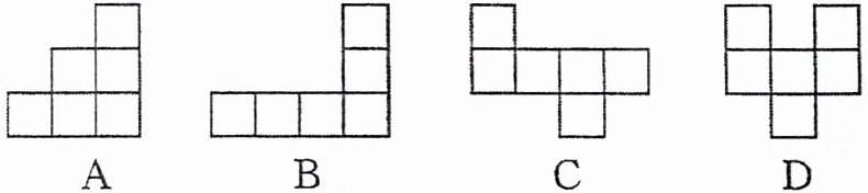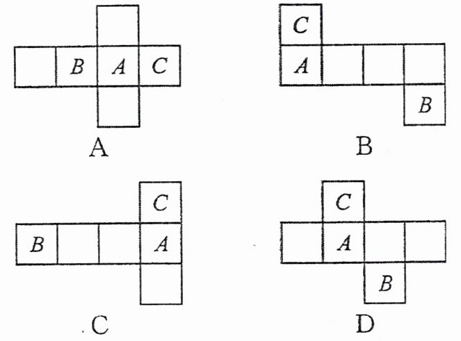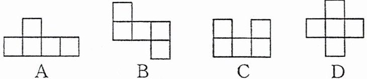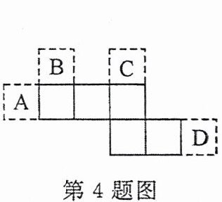 4. 如图所示的A,B,C,D四个位置的某个正方形与实线部分的五个正方形组成的图形,不能拼成正方体的是位置