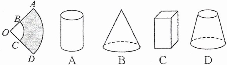 6. 如图,将图中的阴影部分剪下来,围成一个几何体的侧面,使AB与DC重合,则所围成的几何体是 (