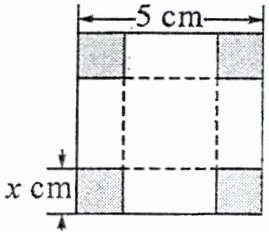 12. 如图,这是一张边长为$5cm$的正方形纸片,将其四个角都剪去一个边长为$xcm$的正方形,然后沿虚线折成一个无盖的长方体盒子,则这个盒子的容积为 (