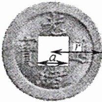 7. 铜钱是我国的早期货币,外圆内方的构造彰显了数学之美.已知铜钱外部的圆半径为$r$,内部的正方形边长为$a$,则铜钱阴影部分的面积用代数式表示为