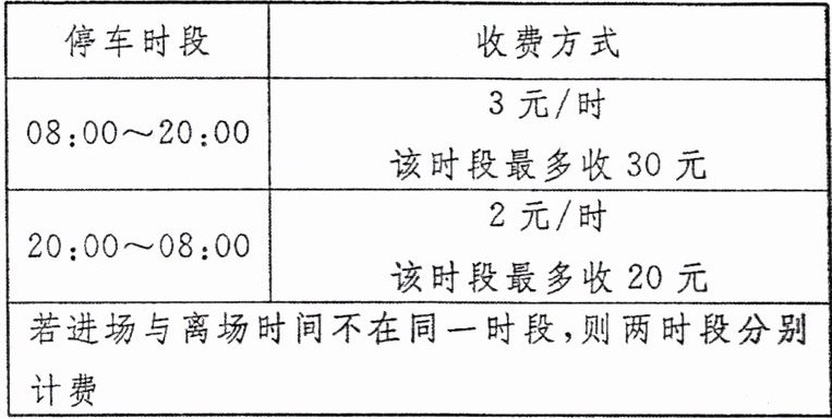 11. 新考向 真实情境 乐乐停车场为24小时营业,其收费方式如下表所示: