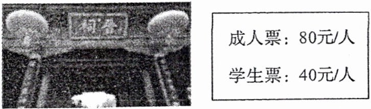(2)当x=2,y=35时,80x+40y=80×2+40×35=1560.答:他们应付1560元门票费。