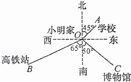 10.解:学校在小明家东北(或北偏东45°)方向上;博物馆在小明家南偏东50°的方向上.高铁站在小明家南偏西65°的方向上.