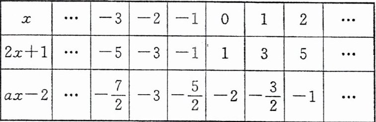 14. 观察下表,写出关于$x$的方程$2x + 1 = ax - 2$的解是