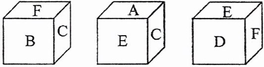 12. (教材P17习题T8变式)一个小正方体的六个面分别标有字母A,B,C,D,E,F,从三个不同方向看到的情形如图所示,则C,A,E相对面的字母分别是(