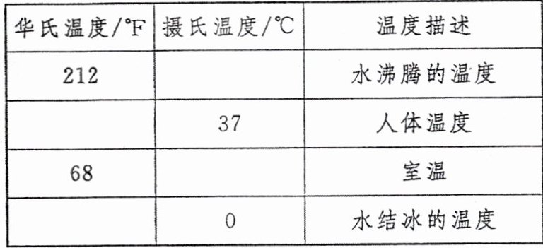 14. 有的温度计有华氏、摄氏两种温标,华氏温度 $F(^{\circ}F)$、摄氏温度 $C(^{\circ}C)$ 温标的转换公式是 $F = 1.8C + 32$,请填写下表.