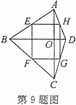 9. 如图,四边形$ABCD$的对角线$AC\perp BD$于点$O$,$E$,$F$,$G$,$H$分别为边$AB$,$BC$,$CD$和$AD$的中点,顺次连接$EF$,$FG$,$GH$和$HE$得到四边形$EFGH$。若$AC = 10$,$BD = 8$,则四边形$EFGH$的面积等于