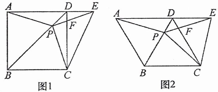 15. 如图1,在平行四边形ABCD中,P是对角线BD上的一点,点E在AD的延长线上,且$PA = PE$,PE交CD于点F,连接PC,CE.