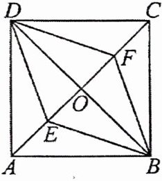 14. 如图,在正方形ABCD中,对角线AC,BD相交于点O,E,F是对角线AC上的两点,且$AE = CF$,连接DE,DF,BE,BF.