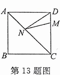 13. 如图,正方形ABCD的边长为8,点M在DC上,且$DM = 2$,N是AC上的一动点,则$DN + MN$的最小值是
