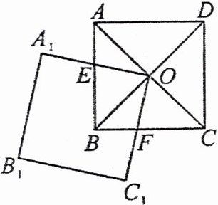 3. (教材P25习题T4变式)如图,正方形ABCD的对角线AC和BD相交于点O,O又是正方形A₁B₁C₁O的一个顶点,OA₁交AB于点E,OC₁交BC于点F。