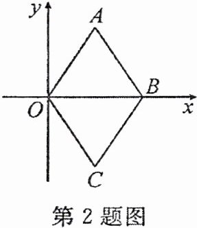 2. 如图,在菱形$OABC$中,点$B$在$x$轴上,点$A$的坐标为$(2,3)$,则点$C$的坐标为