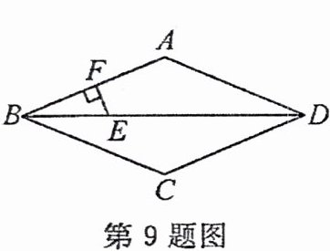 9. 如图,在菱形$ABCD$中,$E$为对角线$BD$上一点,过点$E$作$EF \perp AB$于点$F$。若$EF = 2$,则点$E$到$BC$的距离是