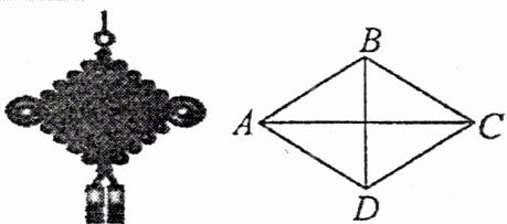 4. (2024·侯马市期末)中国结寓意团圆、美满,以独特的东方神韵体现中国人民的智慧和深厚的文化底蕴. 如图所示的中国结可近似地看为一个菱形, 菱形 $ABCD$ 的周长为 $80\mathrm{cm}$, 对角线 $BD$ 的长为 $24\mathrm{cm}$, 则对角线 $AC$ 的长为