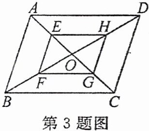 3. 新考向 开放性问题 如图, $□ ABCD$ 的对角线 $AC$, $BD$ 相交于点 $O$, 点 $E$, $F$, $G$, $H$ 分别是 $OA$, $OB$, $OC$, $OD$ 的中点. 若要使四边形 $EFGH$ 成为菱形, 则 $□ ABCD$ 应满足的条件是