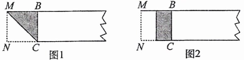 第一步: 在一张矩形纸片的一端, 利用图 1 的方法折出一个正方形, 然后把纸展平.