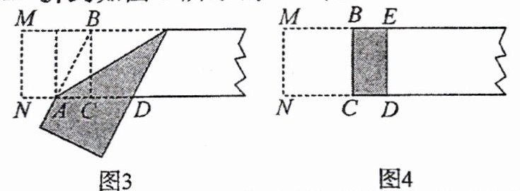 第三步: 折出内侧矩形的对角线 $AB$, 并把 $AB$ 折到如图 3 所示的 $AD$ 处.