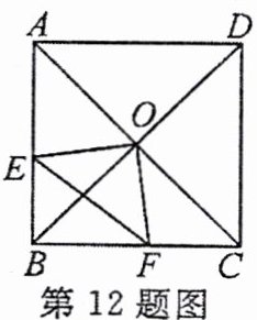 12. (2024·忻州忻府区期中)如图所示, 在正方形 $ABCD$ 中, $O$ 是对角线 $AC$, $BD$ 的交点, 过点 $O$ 作 $OE \perp OF$, 分别交 $AB$, $BC$ 于点 $E$, $F$. 若 $AE = 4$, $CF = 3$, 则 $EF$ 的长为 (