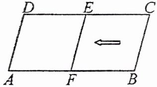 2. 如图,在$□ ABCD$中,$AB = 9\mathrm{cm}$,$BC = 4\mathrm{cm}$,将$CB$沿$BA$方向平移得到$EF$(点$F$在边$AB$上),则当$BF =$