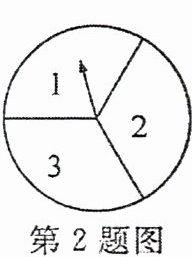 2. 如图,把一个转盘平均分成三份,依次标上数字1,2,3,自由转动转盘两次,把第一次转动停止后指针指向的数字记作$ x $,把第二次转动停止后指针指向的数字记作$ y $,则$ x $与$ y $的和为偶数的概率为