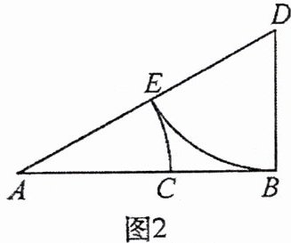 采用如下方法可以得到黄金分割点:如图2,设AB是已知线段,经过点B作BD⊥AB于点B,且使$BD=\frac{1}{2}AB$,连接DA,在DA上截取DE=DB,在AB上截取AC=AE,点C就是线段AB的黄金分割点.