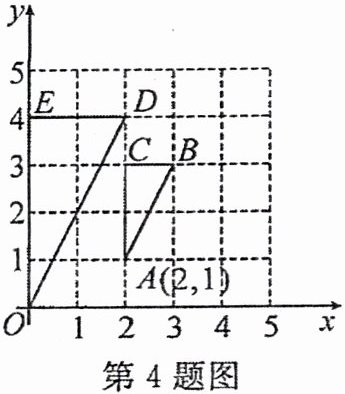 4. 如图,在平面直角坐标系中,△ABC与△ODE是位似图形,则它们位似中心的坐标是