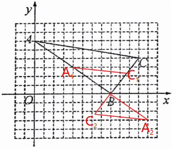 (1)以点B为位似中心,分别在第一象限和第四象限画出△ABC的位似图形△A₁BC₁和△A₂BC₂,使得画出的图形与△ABC的相似比为1:2.