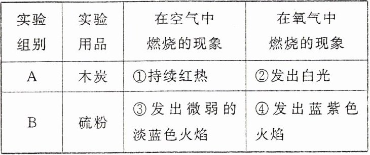 | B | 硫粉 | ③发出微弱的淡蓝色火焰 | ④发出蓝紫色火焰 |