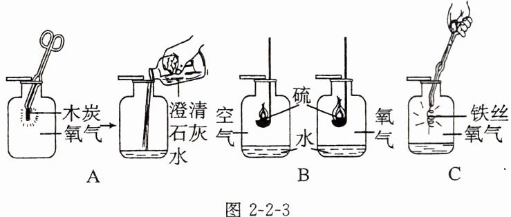 10. (教材 P39 实验 2-3、P40 实验 2-4 改编)化学科学十分重视实证和理性思维。在课堂学习中,通过选用典型物质进行实验,来探究物质的有关性质。如图 2-2-3 所示是探究氧气化学性质的实验,请回答: