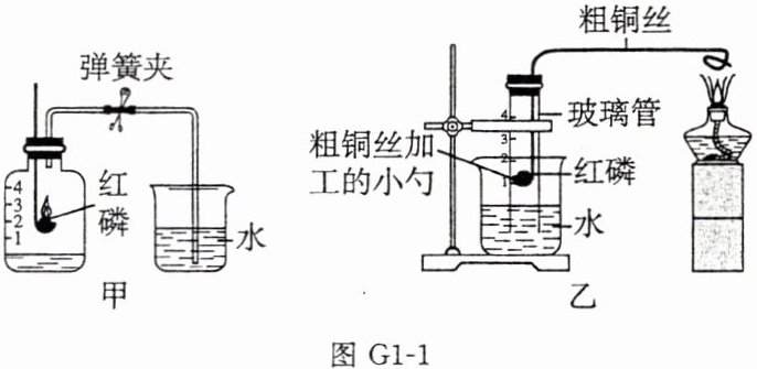 按图G1-1甲完成空气中氧气含量测定的实验时,发现进入集气瓶的水未达到“1”刻度线。