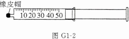 [实验步骤] 讨论后,项目组设计了如图G1-2所示的装置,用暖宝宝粉代替红磷,利用铁粉在空气中氧化的原理进行实验。①将滤纸用水浸润后黏附在针筒内壁;②把暖宝宝粉倒入针筒,轻轻转动,使其分布均匀;③涂上凡士林,将活塞插入针筒,盖上橡皮帽,观察并记录活塞移动情况。