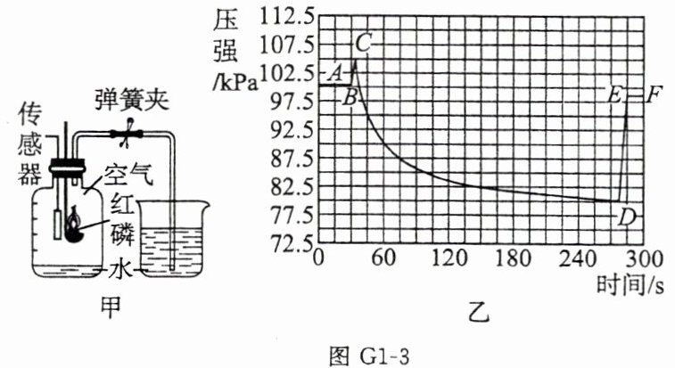 2.[新考法·数字化实验]如图G1-3是测定空气中氧气含量的装置(图甲)及用数字化实验装置测定的瓶内压强变化曲线(图乙)。依据图示回答问题。