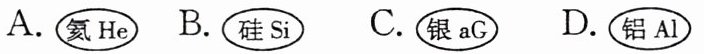 1.(2024 湖南)下列创意灯笼上的元素名称及符号的截图中,有书写错误的是( )